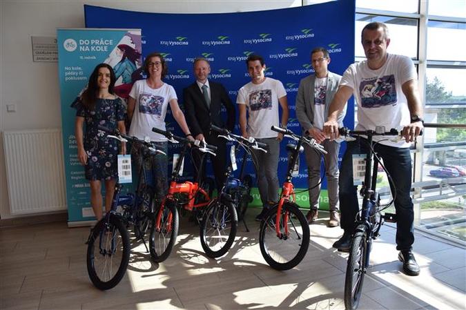 Martina, Jeroným, Milada, Pavla a Aleš získávají od Kraje Vysočina nová skládací kola Tern. Z rukou hejtmana Vítězslava Schreka a radního pro sport Jana Břížďaly je v sídle Kraje Vysočina v Jihlavě převzali za svoji účast a hlavně výkony v letošní celorepublikové výzvě Do práce na kole. Soutěž se letos konala už po jedenácté a zúčastnilo se jí rekordních 22 114 lidí z 2 102 zapojených organizací i firem a také z 9 213 týmů v 51 městech napříč Českem. Na Vysočině přijalo výzvu celkem 1 132 lidí.