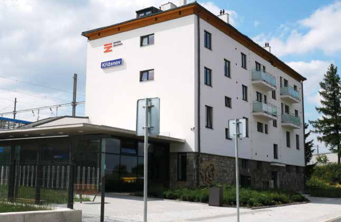Nádraží v Křižanově prošlo velkou a nákladnou rekonstrukcí. Zásadní proměny se dočkala výpravní budova, jejíž část se zbourala a na uvolněném místě vznikla plocha pro cestující se zastávkou autobusu. Rekonstrukce zbývající části budovy zahrnovala zateplení, novou střechu a vytvoření moderního bezbariérového prostoru s čekárnou, pokladnou i toaletou. Bezbariérovost až na ostrovní nástupiště pro cestující zabezpečují nové výtahy. „Celkové náklady stavby dosahují 58 milionů korun,“ vyčíslila opravu nádražní budovy v Křižanově Nela Friebová, tisková mluvčí Správy železnic.