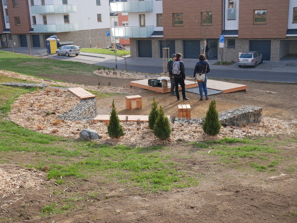 Na jaře přibude síť u hřiště a lavičky, které budou díky zpracovanému projektu městského mobiliáře postupně odpovídat jednotnému vzhledu a použitému materiálu mobiliáře po celém městě. „Prosíme obyvatele, aby dočasně nevstupovali na nově založený trávník na ploše volnočasového hřiště (vstup a užívání bude možné na jaře příštího roku, do té doby je opravdu třeba trávník nijak nezatěžovat) a aby omezili vstup na ostatní nově oseté plochy. Travnatá cesta spojující zpevněné plochy (vstup s muchovníkem poblíž dětského hřiště a prostor u ohniště) je plně pochozí už nyní. Děkujeme,“ žádá návštěvníky nové plochy zahradní architektka Martina Drápelová.