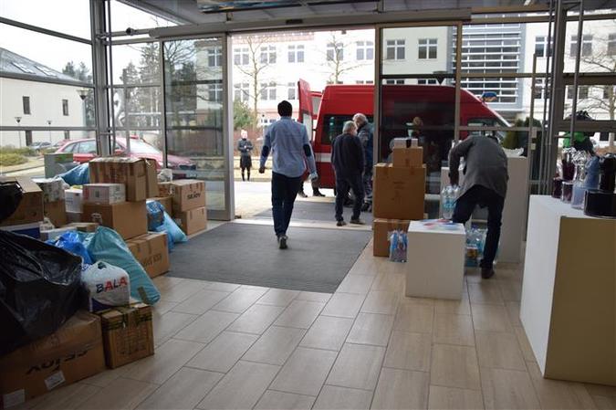 Společně s technikou veze kraj v mimořádné dodávce také i humanitární dar občanů Stonařova. Veškeré volné místo v transportu je vyplněno trvanlivými potravinami nebo hygienickými potřebami. Část stonařovské sbírky, kterou dnes do Jihlavy transportovali tamní dobrovolní hasiči, především pak potraviny a dětské pleny, budou během dneška řízeně přesunuty i do Krajského asistenčního centra pomoci Ukrajině v Jihlavě. Potraviny v centru prozatím zajišťuje Charita Jihlava a poděkování za velkou dodávku balené vody patří Pivovaru Jihlava.