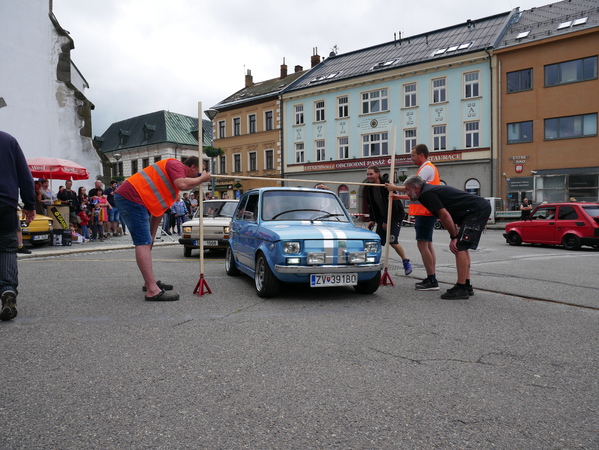 Průjezd pod překážkou zvládli všichni, ale jen jeden z nich se dostal pod výšku 125 centimetrů. Pro překonání snižující se překážky bylo povolené upouštění kol i neobvyklý počet cestujících. Zbytek víkendu trávili „malucháři" na Fajtově kopci.