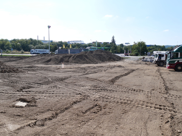 Stavba obchodního centra s Lidlem naproti čerpací stanici MOL ve Velkém Meziříčí byla v září zahájena