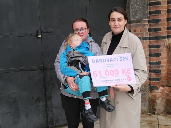 Jedenašedesát tisíc korun pro Honzíka vynesl charitativní sekáč v synagoze. Peníze od organizátorky Alžběty Bezděkové převzala jeho maminka Markéta Doležalová v úterý 7. května.
