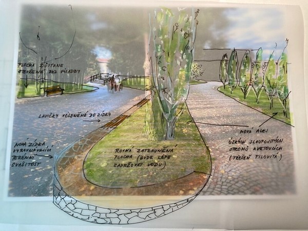 To představuje stavbu kamenných zídek a terénních stupňů zakomponovaných do terénu. Součástí projektu jsou také zpevněné plochy pro umístění dvou nových laviček.